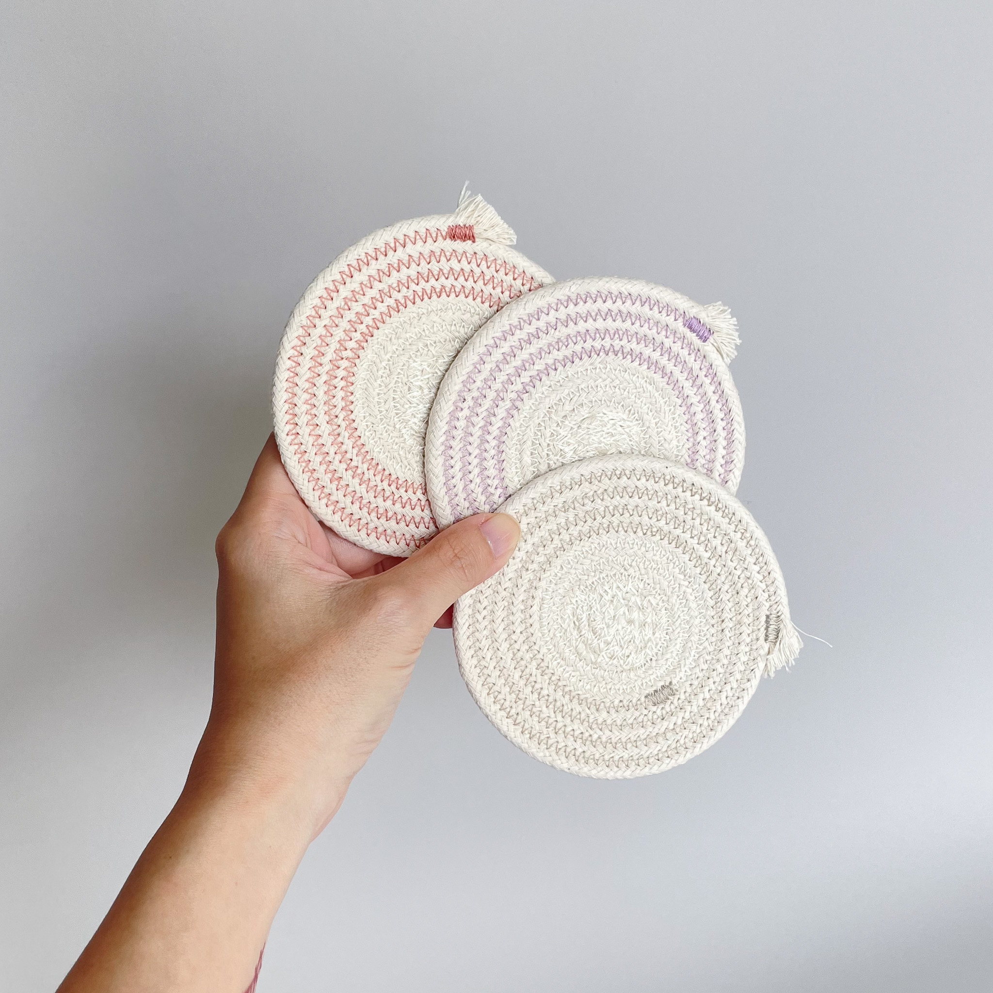 棉素材具有吸水的特性,作為杯墊相當合適。有多色可以選擇。