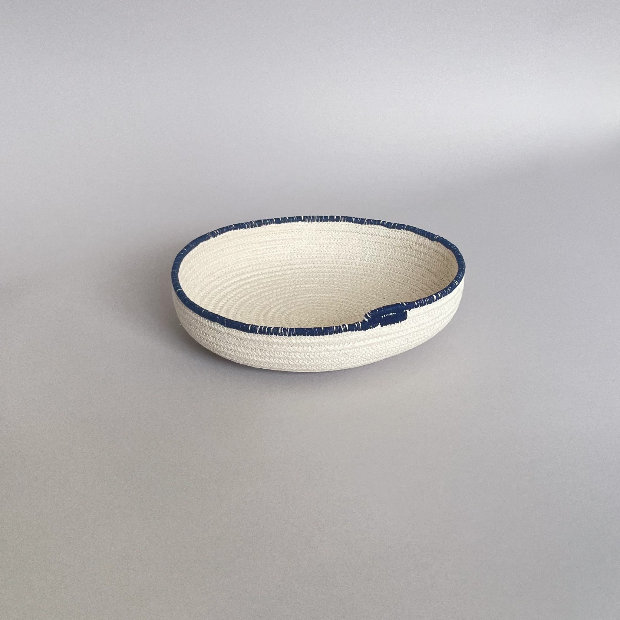 由 9 公尺長的未染色的棉繩盤繞縫製而成,透過在縫紉機上輕輕的拉扯創造出有如編織般的表面裝飾紋路,給空間帶來柔和的氛圍。適合放置隨時要取用的零散小物,如飾品、鑰匙、零錢等,有多色可選。